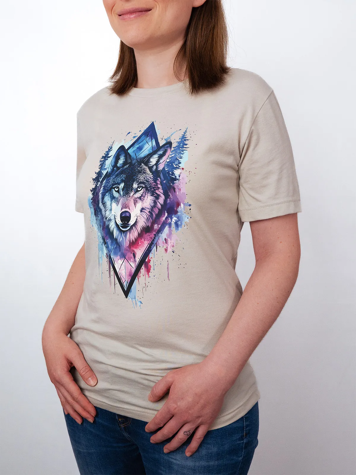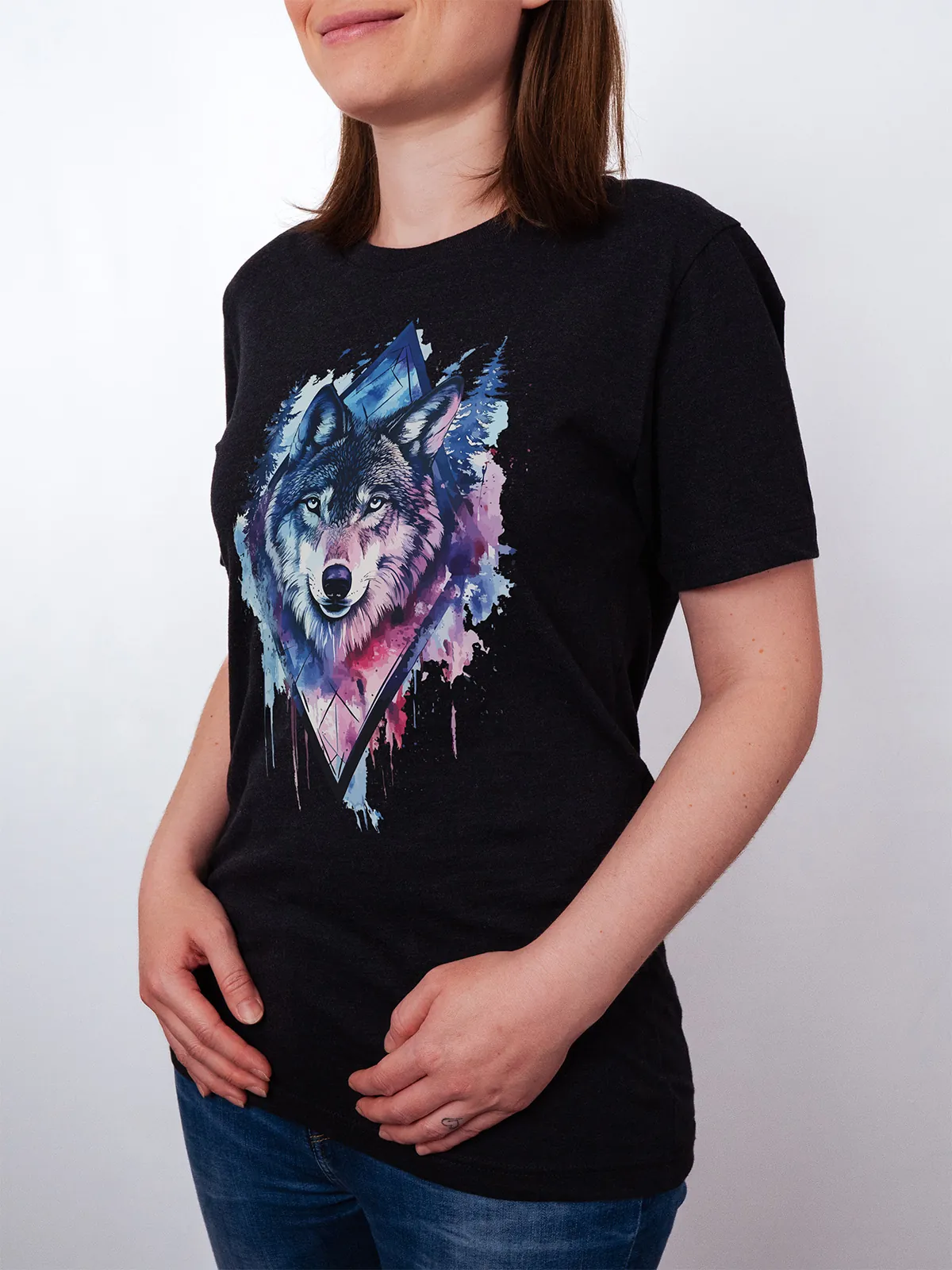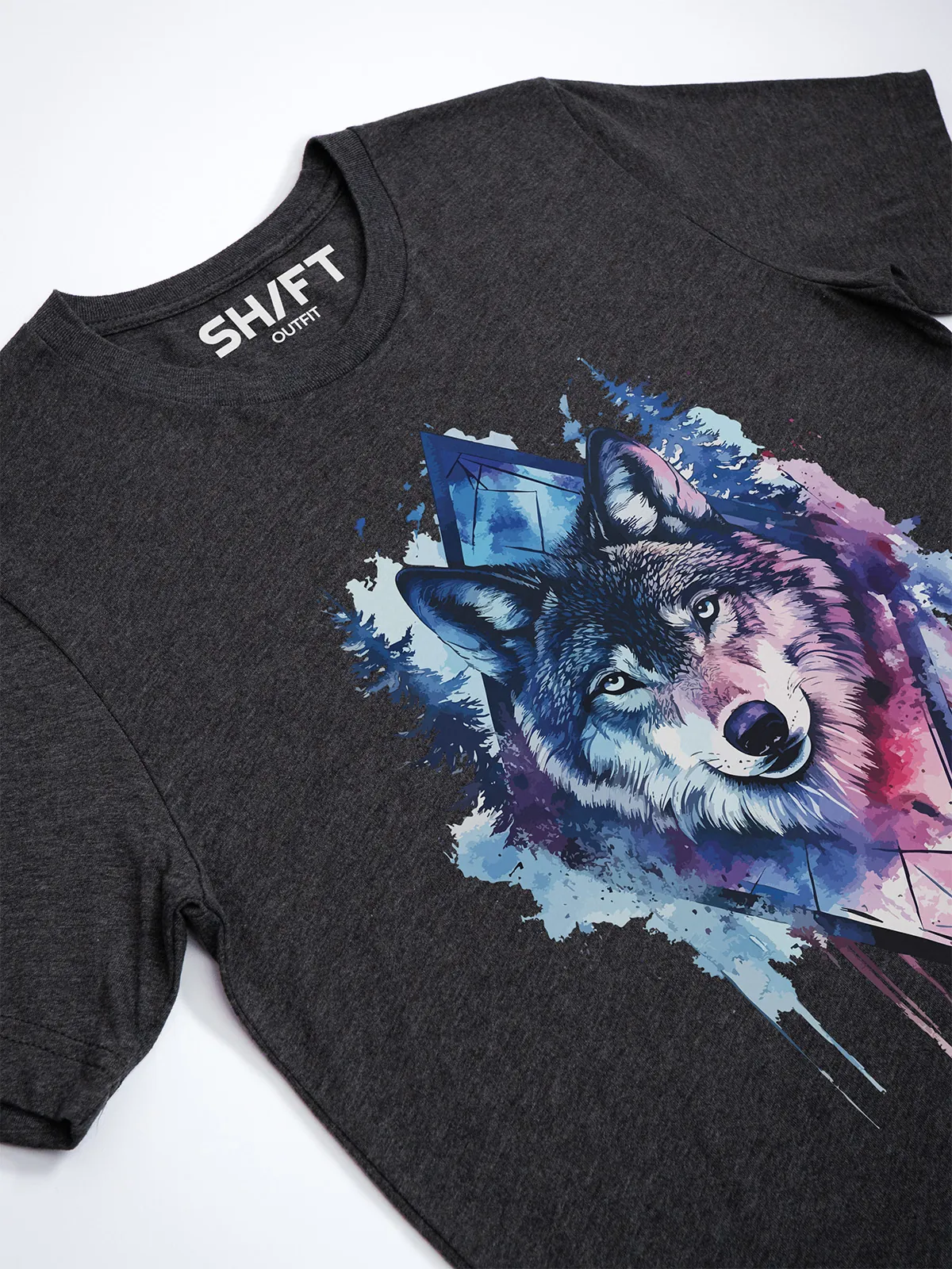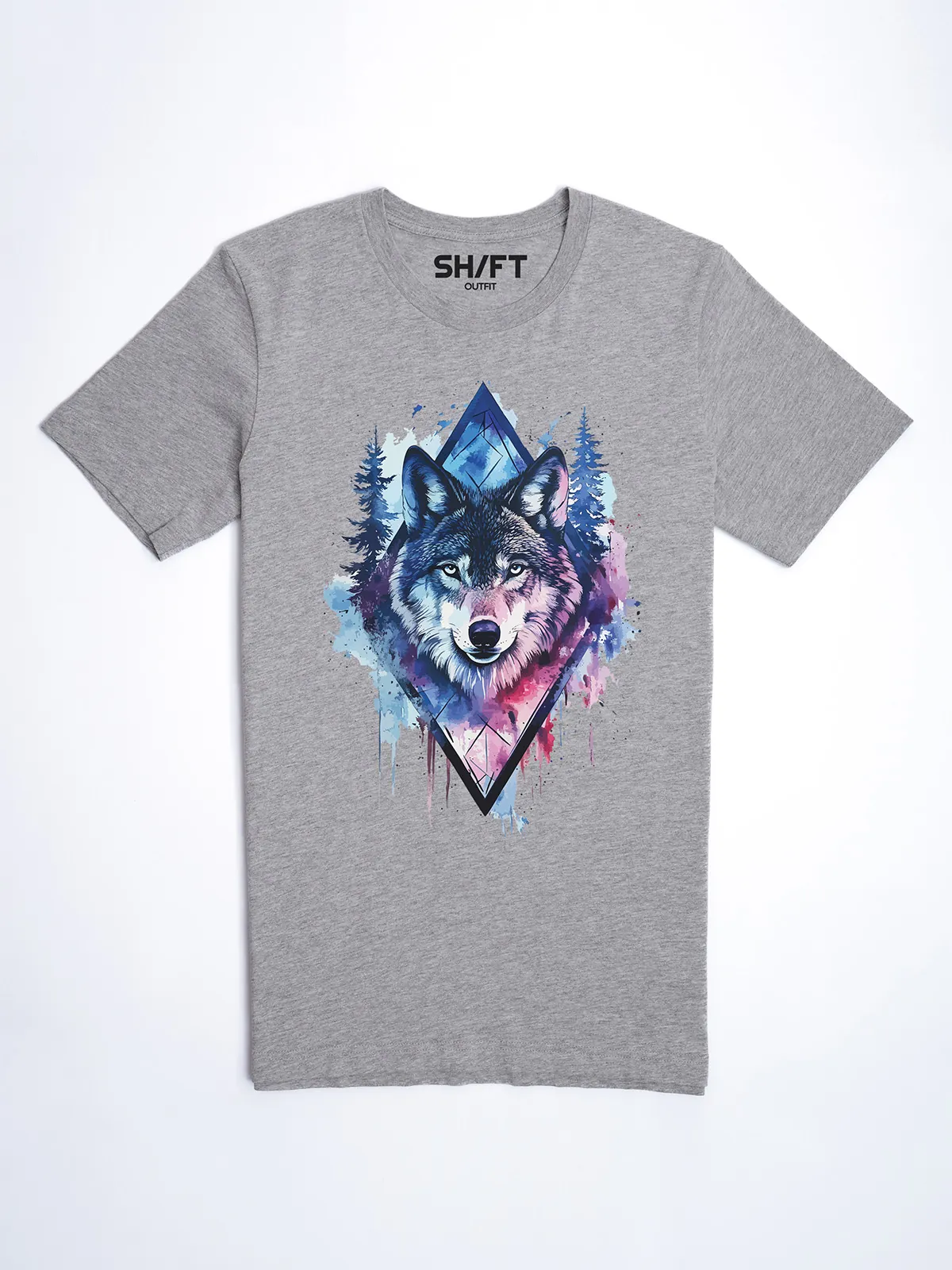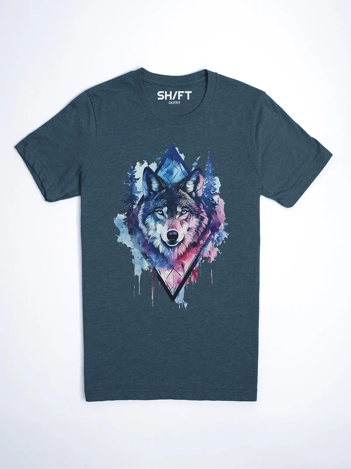 Umfassen Sie Ihre wilde innere Kraft mit einem Design, das einen majestätischen Wolf in leuchtenden Wasserfarben aus Blau und Magenta zeigt, umrahmt von heiliger Geometrie und Waldlandschaft. Dieses T-Shirt zelebriert die spirituelle Verbindung und die rohe Kraft des Wolfsgeistes und ist perfekt für alle, die sich von der Symbolik der Tiere inspirieren lassen und Mut und Intuition verkörpern möchten. Egal, ob Sie spirituell auf der Suche sind oder sich zu lebendigen Ausdrucksformen der Symbolik der Tierwelt hingezogen fühlen, dieses Design bringt transformative Energie und ungezähmte Authentizität in Ihre Garderobe.