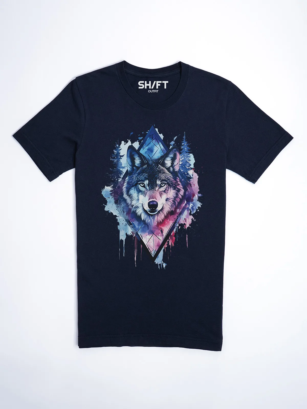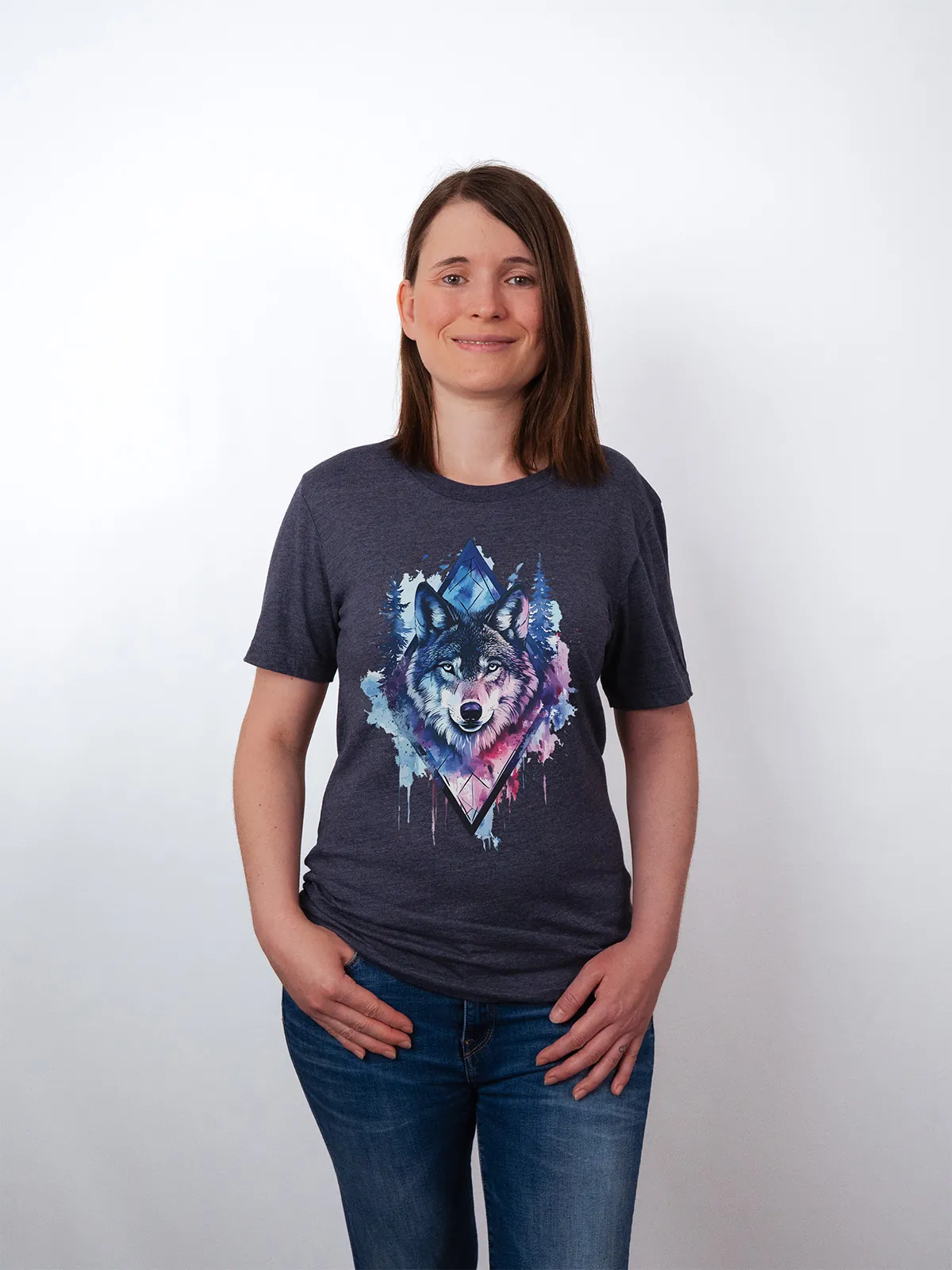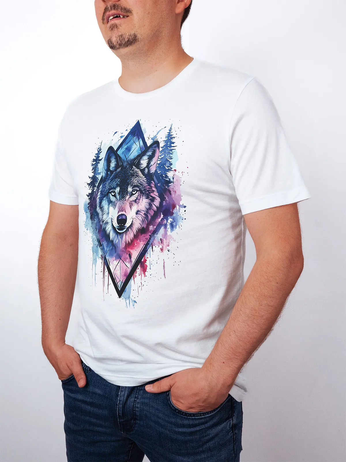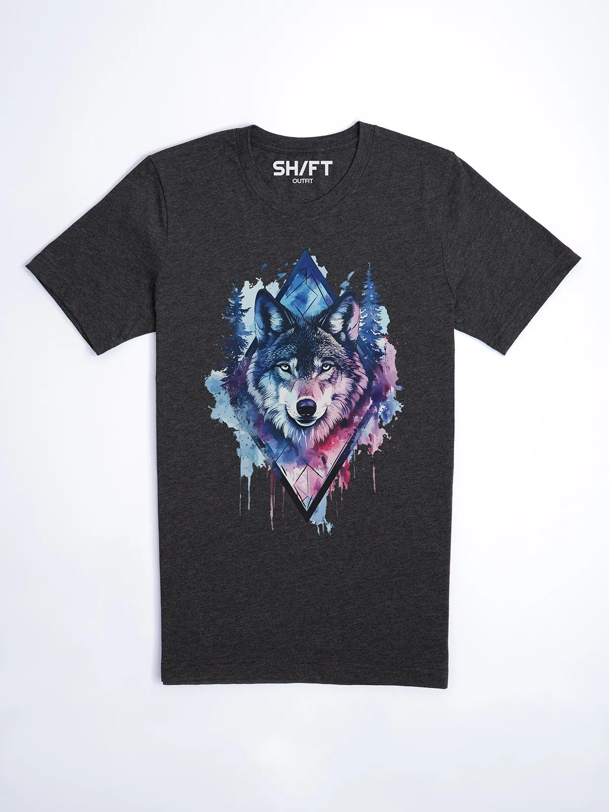 Umfassen Sie Ihre wilde innere Kraft mit einem Design, das einen majestätischen Wolf in leuchtenden Wasserfarben aus Blau und Magenta zeigt, umrahmt von heiliger Geometrie und Waldlandschaft. Dieses T-Shirt zelebriert die spirituelle Verbindung und die rohe Kraft des Wolfsgeistes und ist perfekt für alle, die sich von der Symbolik der Tiere inspirieren lassen und Mut und Intuition verkörpern möchten. Egal, ob Sie spirituell auf der Suche sind oder sich zu lebendigen Ausdrucksformen der Symbolik der Tierwelt hingezogen fühlen, dieses Design bringt transformative Energie und ungezähmte Authentizität in Ihre Garderobe.