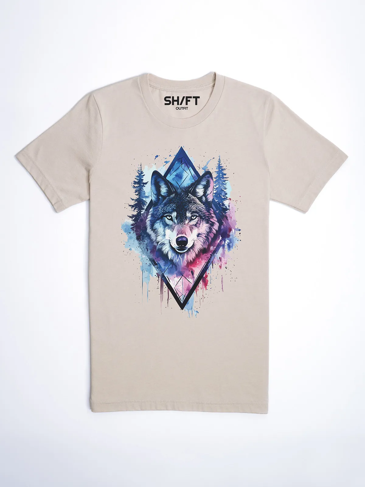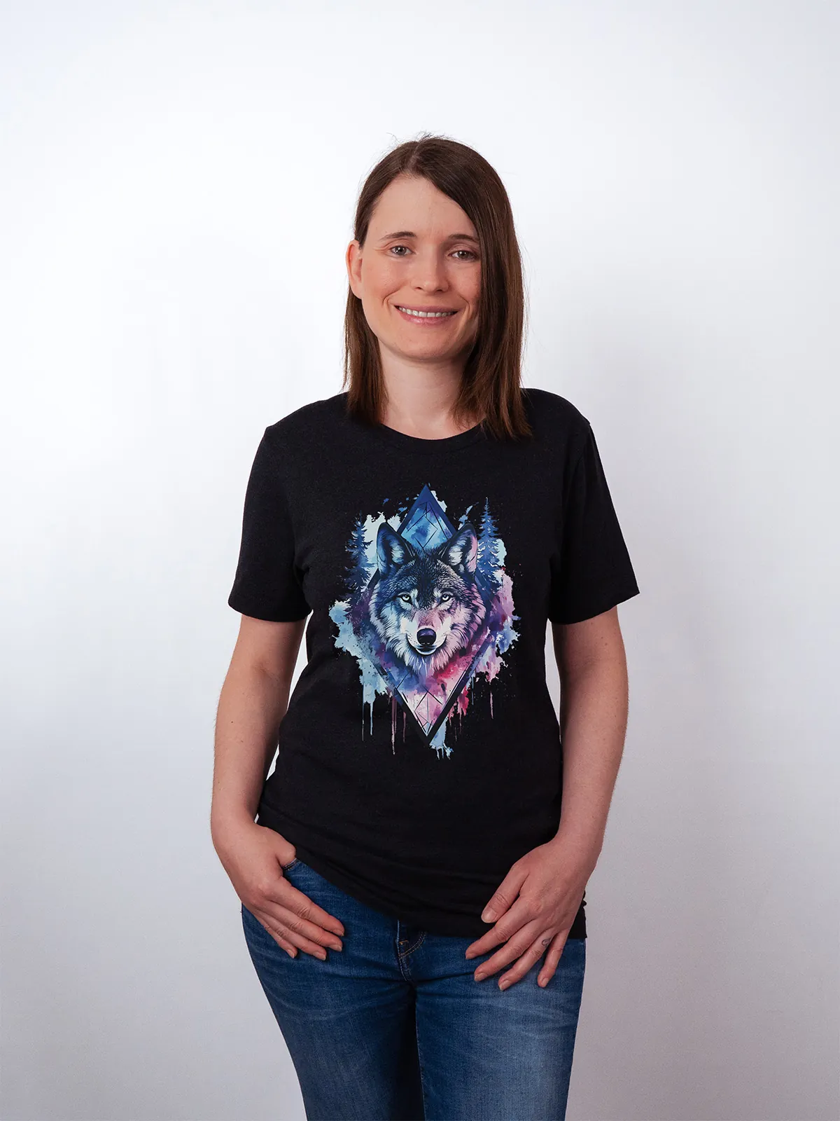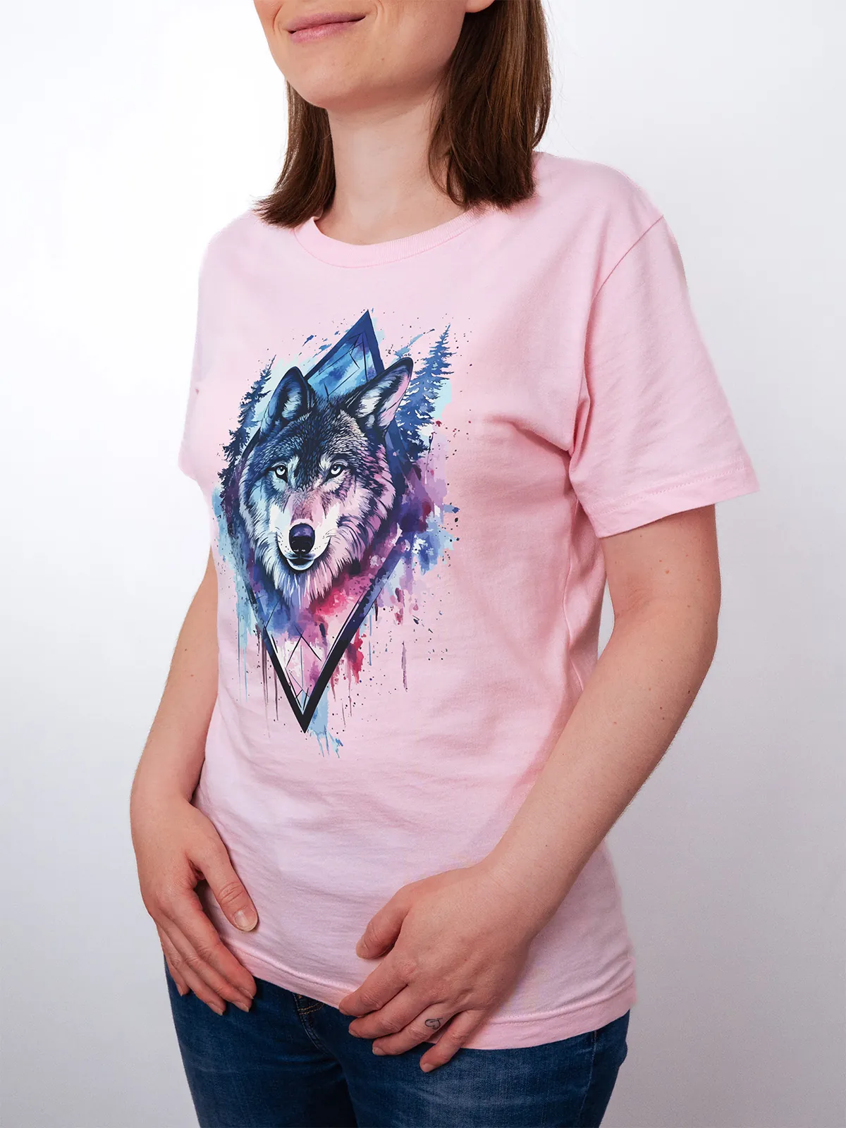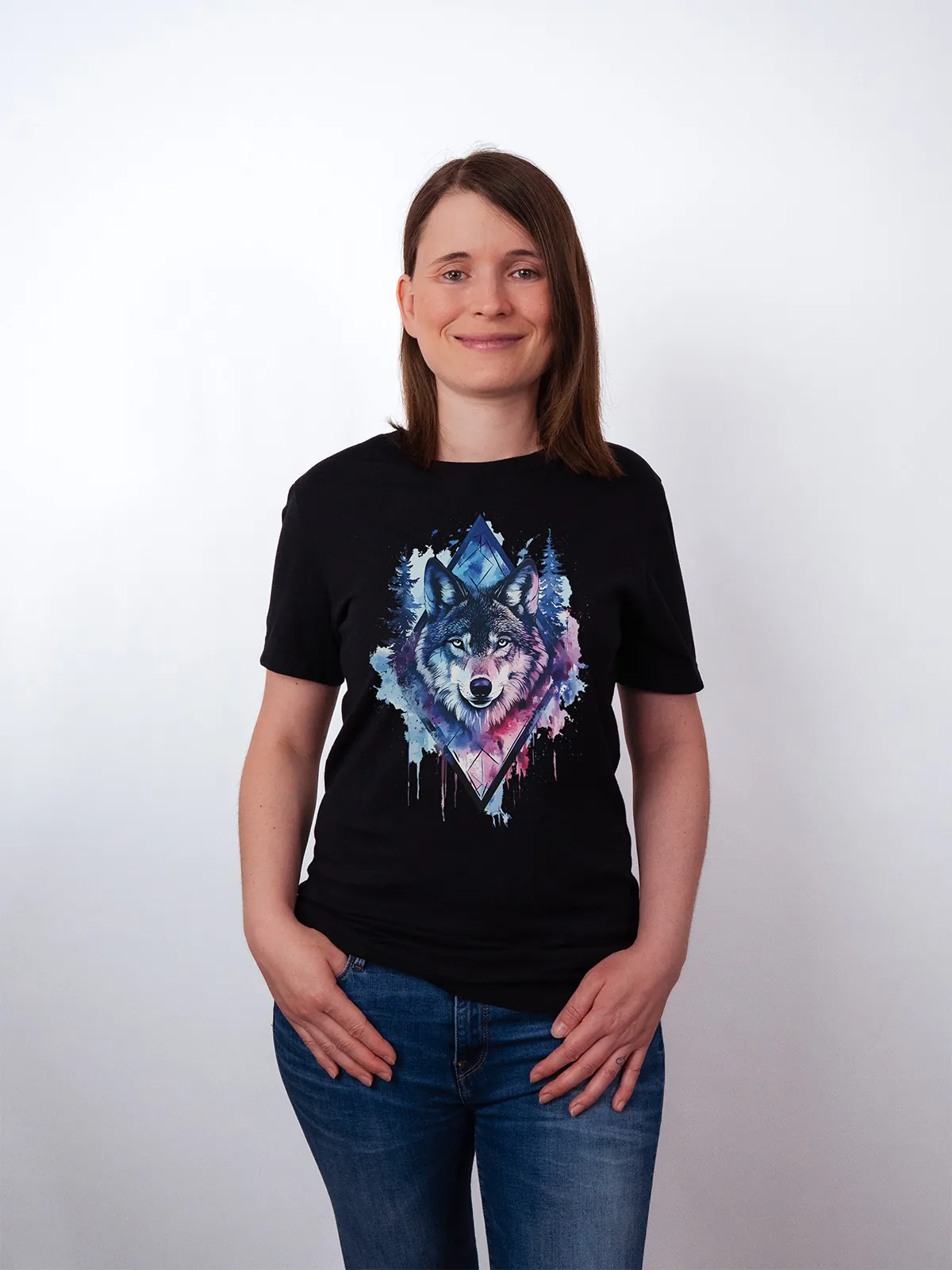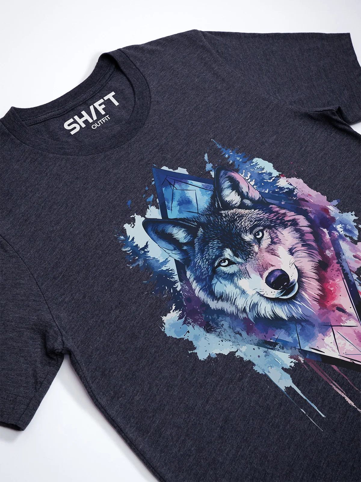 Umfassen Sie Ihre wilde innere Kraft mit einem Design, das einen majestätischen Wolf in leuchtenden Wasserfarben aus Blau und Magenta zeigt, umrahmt von heiliger Geometrie und Waldlandschaft. Dieses T-Shirt zelebriert die spirituelle Verbindung und die rohe Kraft des Wolfsgeistes und ist perfekt für alle, die sich von der Symbolik der Tiere inspirieren lassen und Mut und Intuition verkörpern möchten. Egal, ob Sie spirituell auf der Suche sind oder sich zu lebendigen Ausdrucksformen der Symbolik der Tierwelt hingezogen fühlen, dieses Design bringt transformative Energie und ungezähmte Authentizität in Ihre Garderobe.